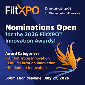 The FiltXPO™ Innovation Awards celebrate excellence in filtration by honoring products and technologies introduced since FiltXPO 2023. Submissions are now being accepted across three categories.