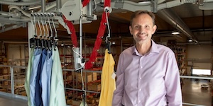The company’s Unit Production System (UPS) was developed as an automated ceiling-mounted conveyor system that moved the shirts one by one through the various work steps, the company was able to move from mass production to one-off production.