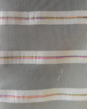 A new curtain collection from KARL MAYER with fancy stripe patterns demonstrates the potential of Warp Knits for window decoration. The articles of the series were produced on a TM WEFT in gauge E 24 and feature striped segments of varying widths and densities. The variation is made possible by the choice of weft repeat and stitch density. The use of effect yarns provides even more design flexibility.
