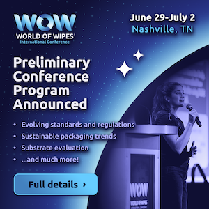 CARY, N.C. — March 3, 2026 — INDA, the Association of the Nonwoven Fabrics Industry, has released the preliminary conference program for the 2026 World of Wipes® (WOW) International Conference, to be held June 29–July 2 at the Grand Hyatt Nashville in Nashville, Tennessee.